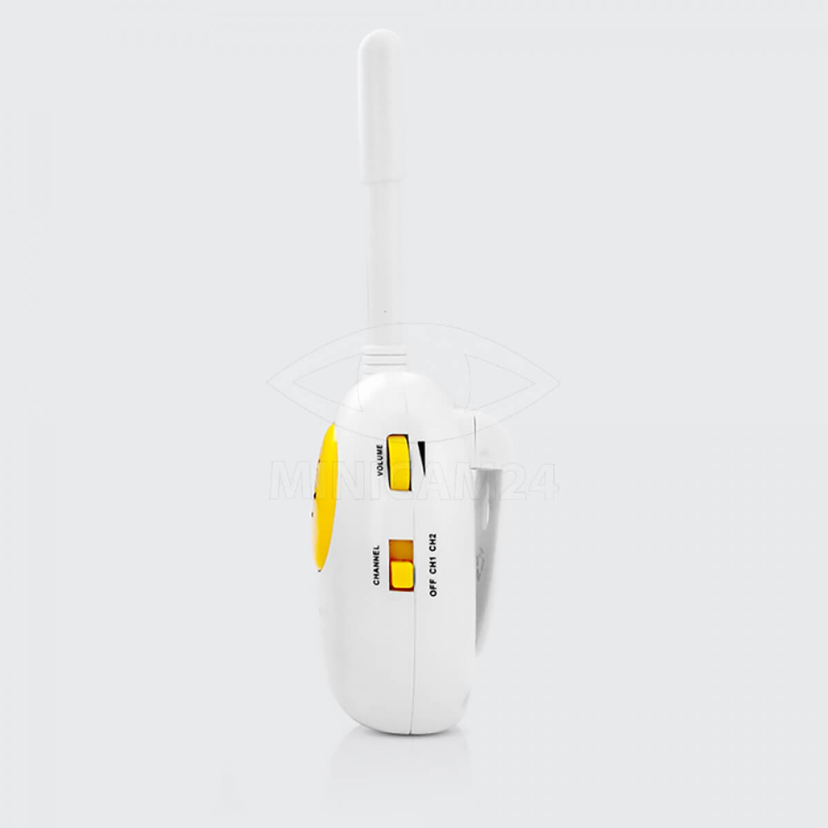 Радионяня беспроводная BabyCare с односторонней голосовой связью применяется для наблюдения за малышом из другой комнаты. Детская радионяня представляет собой две рации с односторонней связью, чтобы ребенок мог слышать родителей или наоборот. Устройство подойдет для малышей и для новорожденных. Рации работают в радиусе 100 метров друг от друга. В качестве источника питания используются батарейки, которые обеспечивают непрерывную работу в течение 23 часов. Радионяня управляется кнопками на корпусе. В устройстве предусмотрена система уведомления о низком заряде. Радионяню можно установить на ровной поверхности либо закрепить при помощи специальной клипсы на задней части.