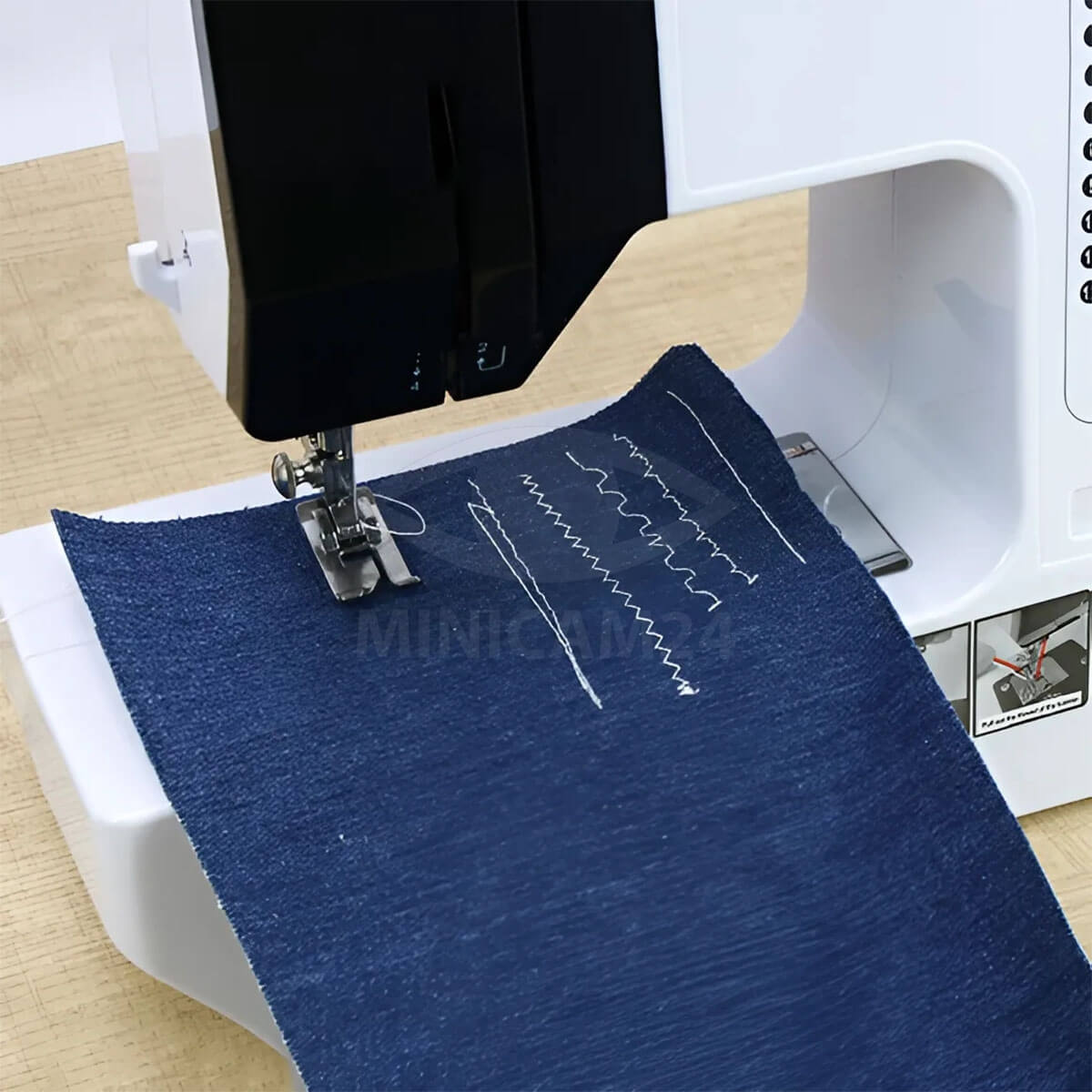 Скорость работы машинки регулируется на двух уровнях — медленном и быстром, с максимальной скоростью 300±50 об/мин. При этом высота прижимной лапки составляет 5.5 мм, а длина стежка варьируется от 1.5 до 3.5 мм, что позволяет точно настраивать параметры под разные типы тканей и задач. Функция реверса обеспечивает удобство в создании крепких и ровных швов.
